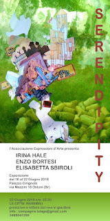 OSTUNI (BR). Continuano le iniziative nella città di Ostuni: a Palazzo Cirignola, in via Mazzini n°18, l'associazione Espressioni d'Arte presenta "Serendipity" dal 16 al 22 giugno con l'esposizione di Irina Hale, Enzo Bortesi e Elisabetta Sbiroli.