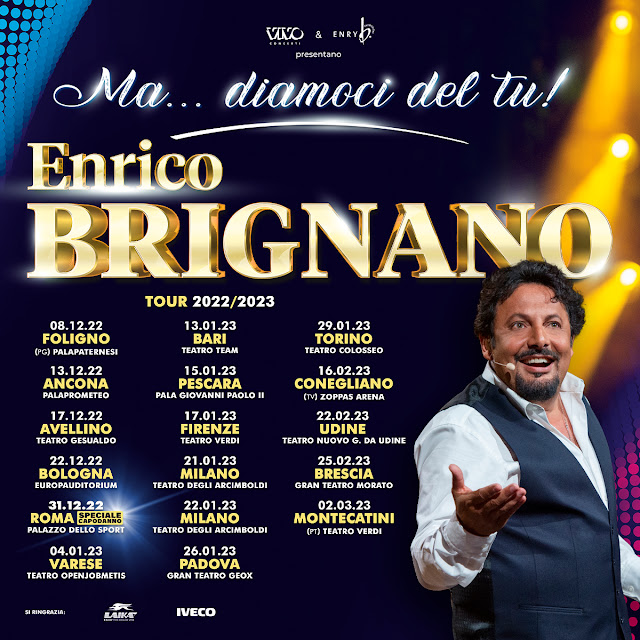 Dopo il grande successo del tour estivo in tutta Italia e dell'annuncio della speciale data di Capodanno, Enrico Brignano annuncia il tour invernale di “MA… DIAMOCI DEL TU!” , prodotto e organizzato da Vivo Concerti e in partenza giovedì 8 dicembre.